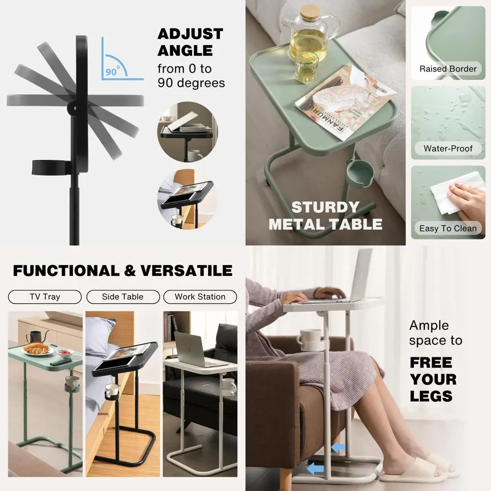 Adjustable Metal TV Tray on Wheels, Side Table with Folding Laptop Desk, 3-Height & 90° Tilt, Portable Overbed Sofa Stand (Charc $55.32