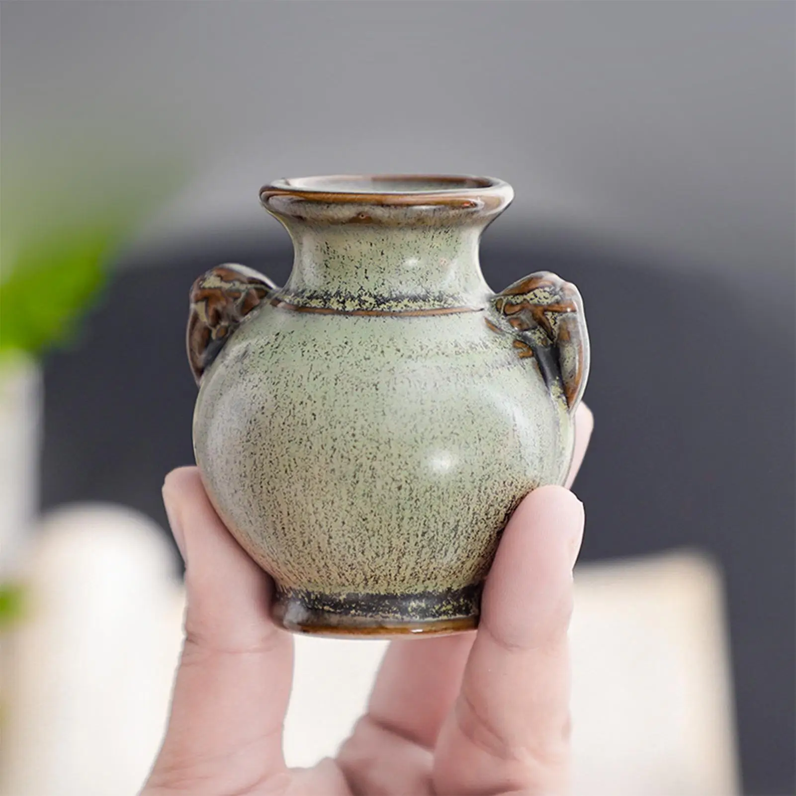 Hydroponics Chinese-style Living Room Decoration Ceramic Small Vase Green Retro Flower Vase Crafts Tabletop Ornament $8.36