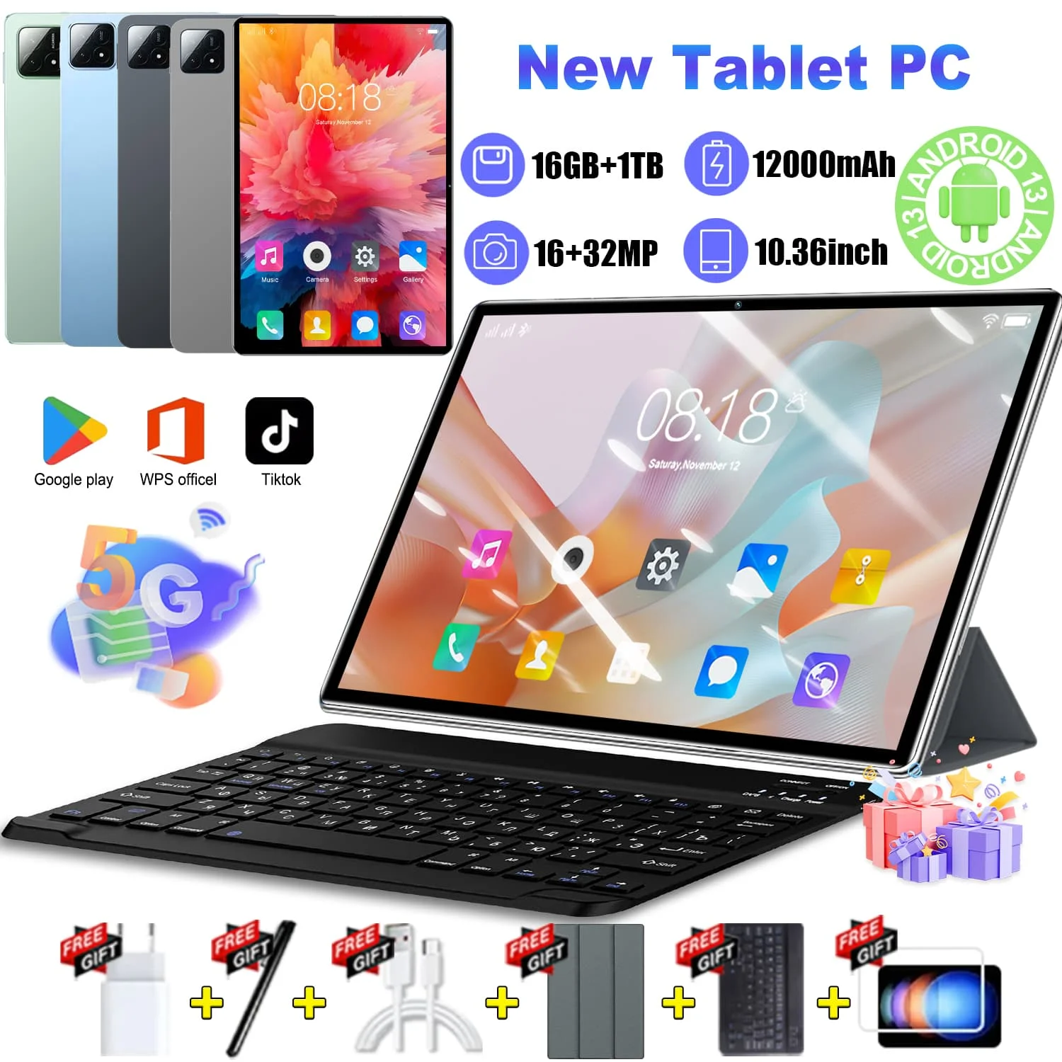 2025 5G New 10.36Inch Tablet Android 16GB RAM 1TB ROM Android 13.0 12000mAh Battery 16MP 32MP 10 Core Dual Sim Network Bluetooth $69.71