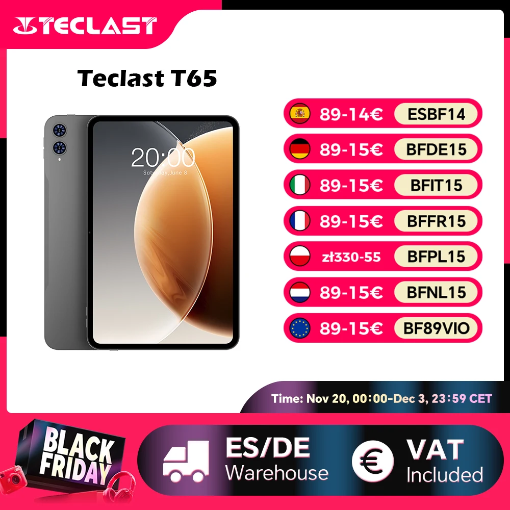Teclast T65 Tablet Android 16 13.4 Inch 120Hz Screen T7280 Octa-Core Max 20Gb Ram 128Gb Rom (up to 1Tb) 4g Lte 8000Mah Widevine L1 $171.32