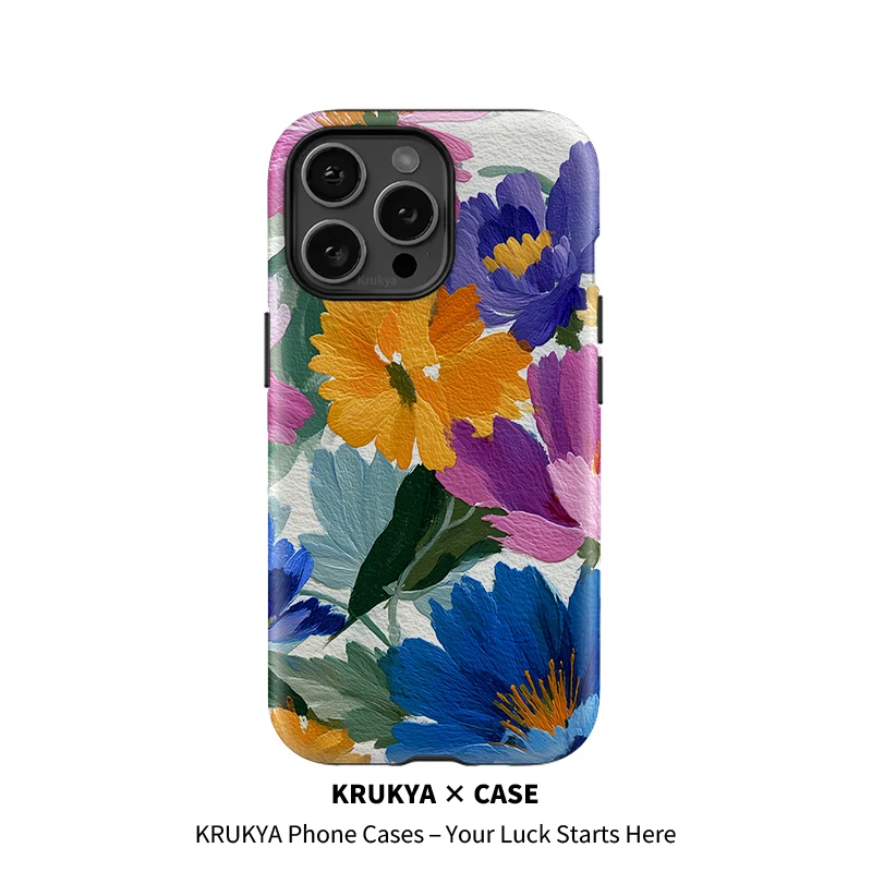 Krukya Flower Painting For iPhone 17 Air 16 15 Pro 14 Plus 13 12 Pro Max 11 XR XS Max SE 2022 Acrylic Dual Layer PC TPU Cover $5.93