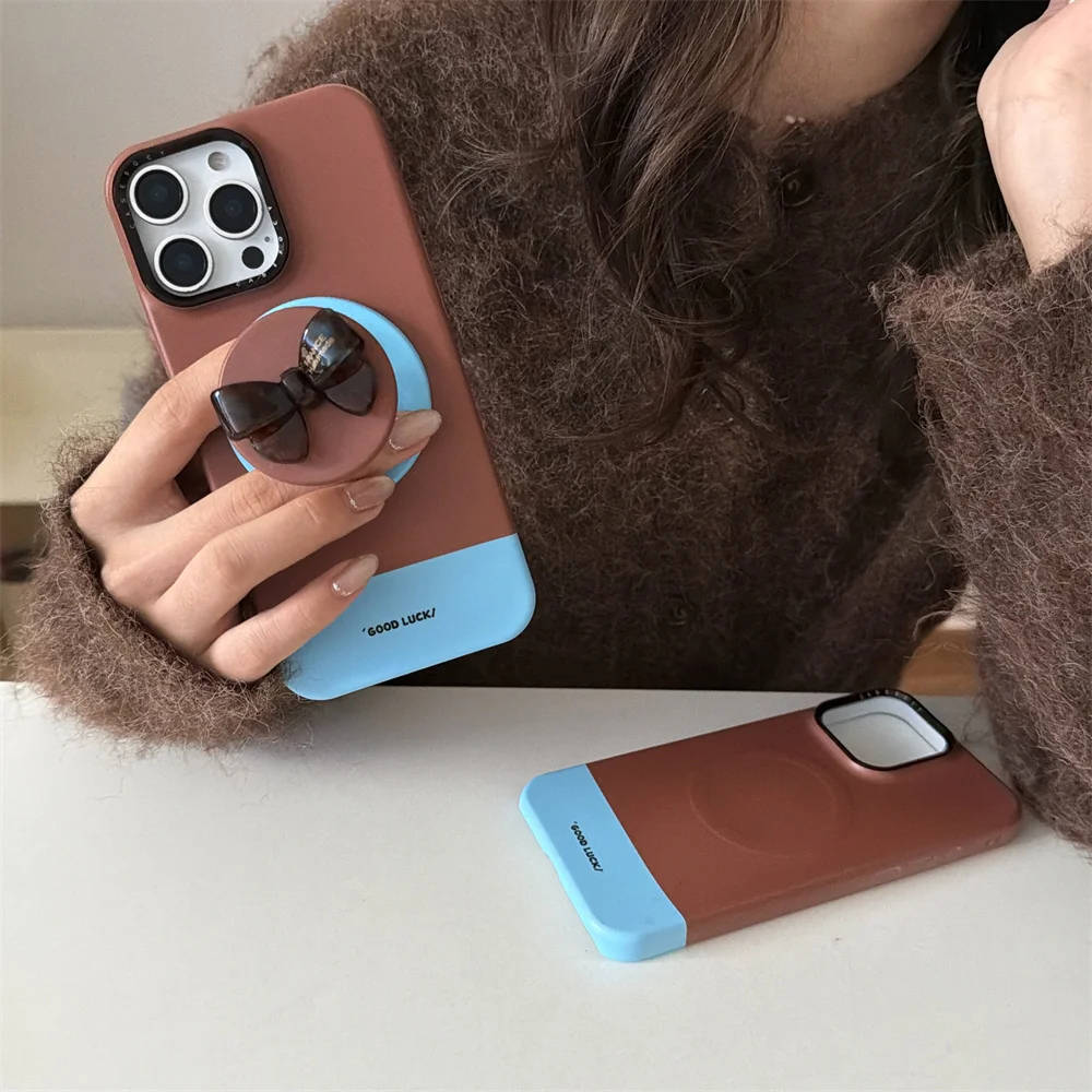 New Korean minimalist coffee colored protective case with FRO magnetic bracket, suitable for iPhone 17/13/14/15/16 Pro Max anti $7.84