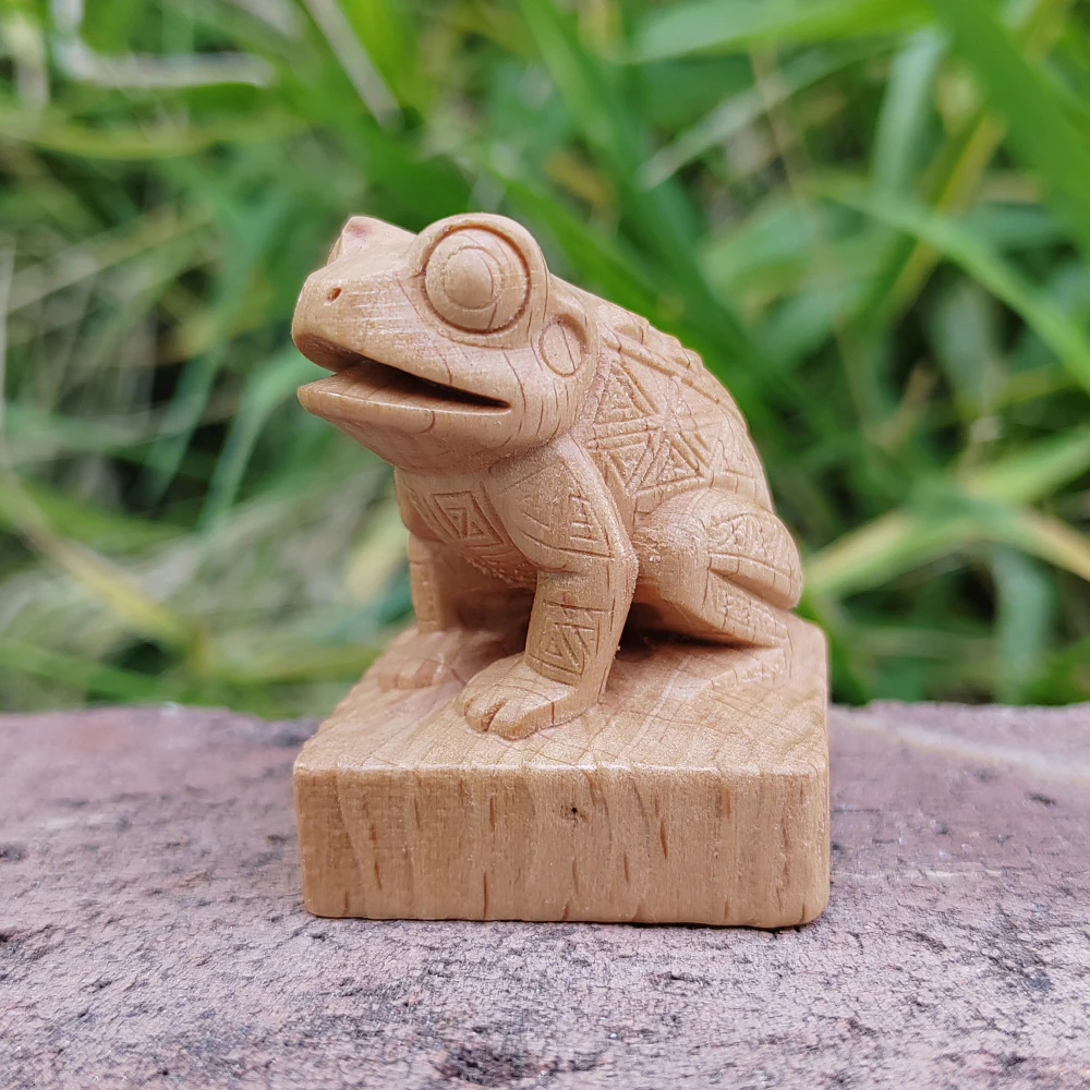 1.8 Inch Wooden Frog Totem Figurine Ornament, Hand-Carved, Ethnic Style, Suitable for Christmas Decorations, Party Decorations, Tabletop Decorations, Bedroom, Back-To-School Season Gifts, New Year Gifts, Home Decoration $5.81