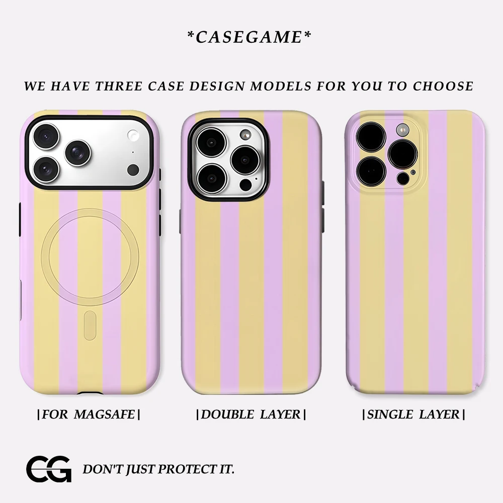 Lemon Lavender Stripe IPhone17 Must-Haves Phone Case for IPhone 17 16 15 14 13 50 Pro Max Plus Double-layer Back Cover $8.04