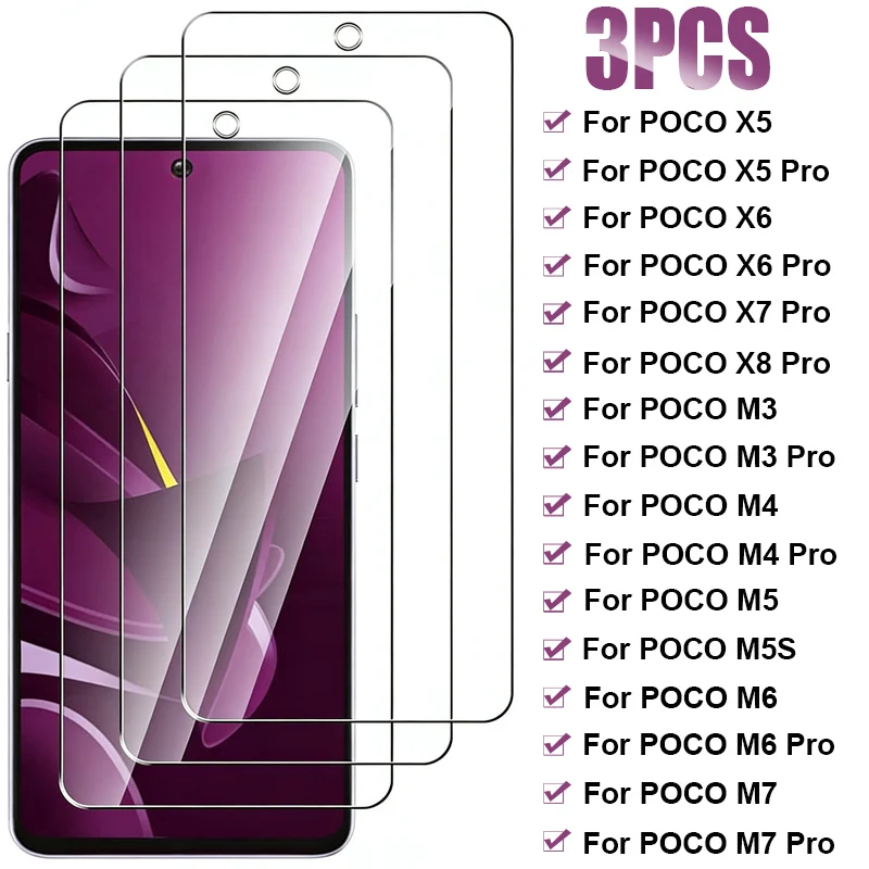 3PCS Full cover Protective Glass For Poco X5 X6 X7 X8 Pro Max 5G Screen Protector for Xiaomi Poco M3 M4 M5 M6 M7 Pro Glass Film $4.52