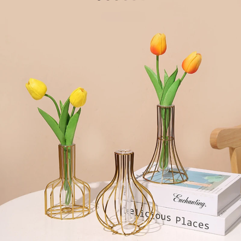 Golden Iron Glass Vase Table Living Room Decoration Transparent Vase Flower Arrangement Hydroponic Vase Home Decoration $7.64