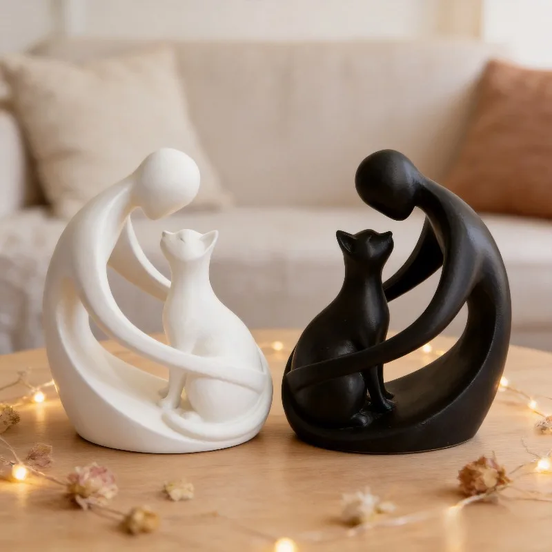 Statue of a human and a cat, modern abstract tabletop decoration, a gift for pet lovers, for Eid al-Fitr celebration $6.41