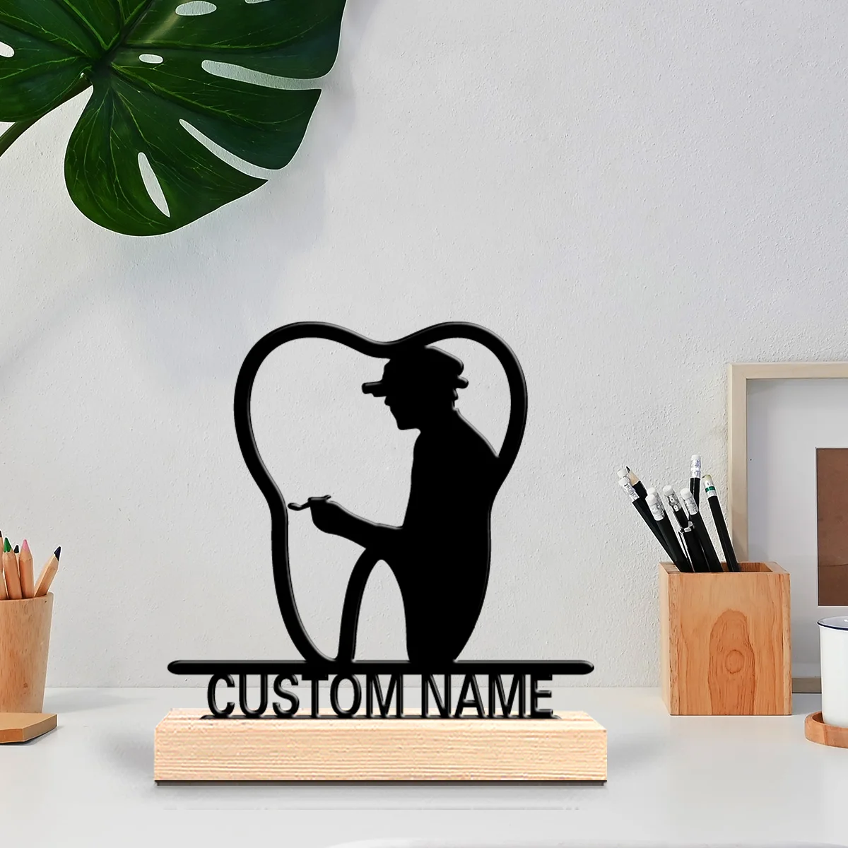 1pc Stylish personalized custom Dentist Metal statues Metal Art with Wooden Base Tabletop Decoration Suitable for doctors, deskt $10.64