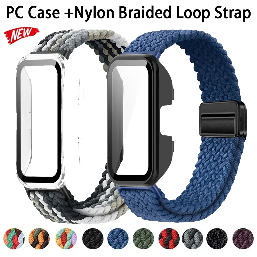PC Case +Nylon Braided Loop Strap For Huawei Band 10 9 Cover Shell Wristband For Huawei Band 10 9 8 Comfortable Bracelet Correa $4.61