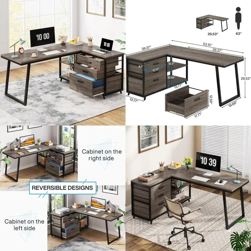 L-Shaped 3-Drawer Reversible Corner Computer Desk with Shelves, 53-Inch Industrial Style Home Office Desk for PC $196.40