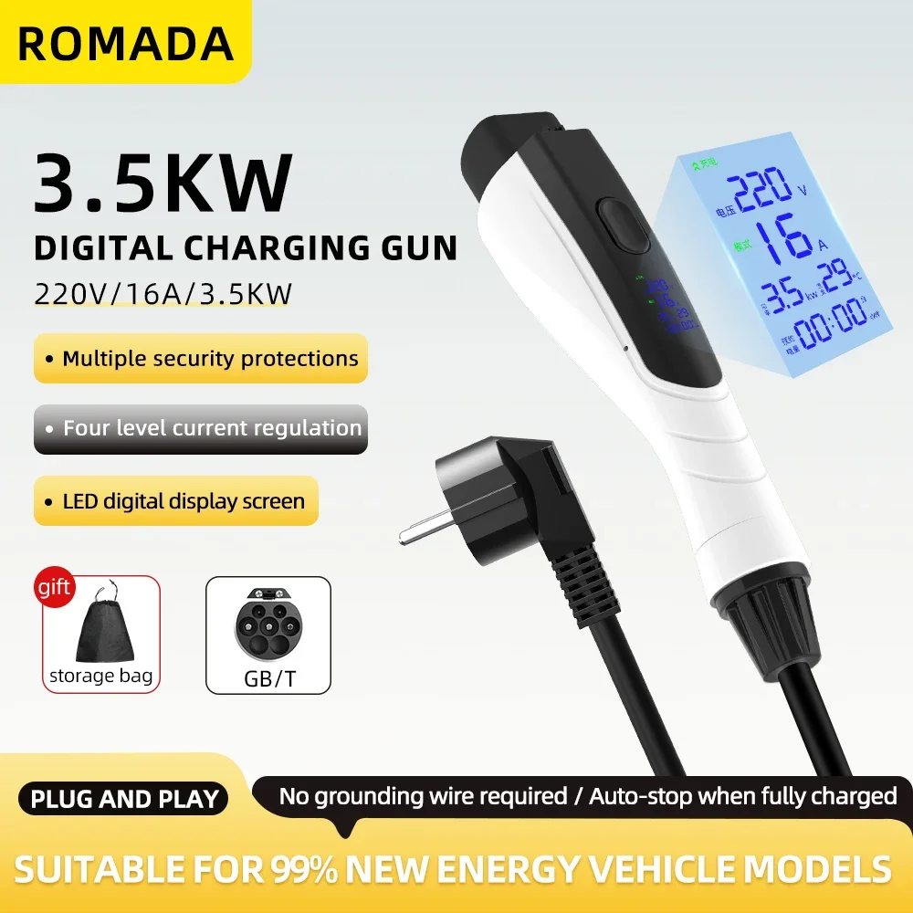 NEW 3.5KW 16A GB/T20234 EV Portable Charger 3M-20M Cable EVSE EU Plug Wallbox Adapter With Display Screen Safe Universal For EV $59.69