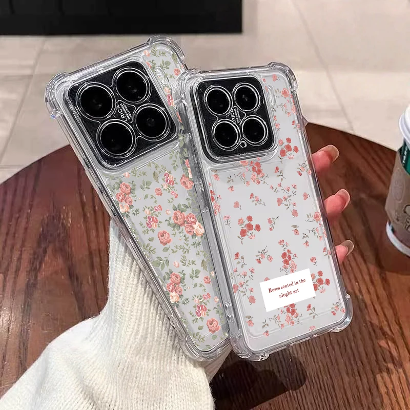 Phone Casing For Xiaomi POCO X7 F7 X5 X3 X4 NFC M3 M4 Pro F4 Mi 15 Ultra 15T Pro 12T 13T Flower Airbag Shockproof Clear Case $3.57
