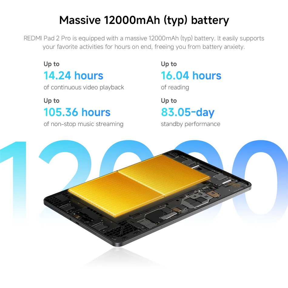 Global Version Redmi Pad 2 Pro Xiaomi Tablets 12.1" 2.5K Display Massive 12000mAh Snapdragon 7s Gen 4 Dolby Vision 33W $269.00