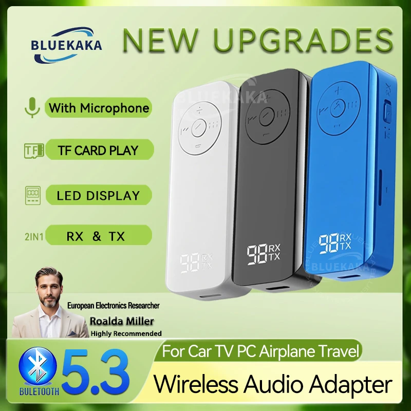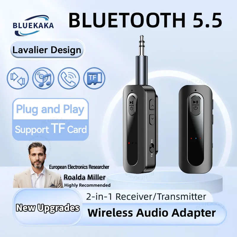 2 in 1 Bluetooth 5.5 Audio Receiver Transmitter 3.5MM AUX TF Card Stereo Music Wireless Adapter With Mic For Car TV PC Airplane $7.24