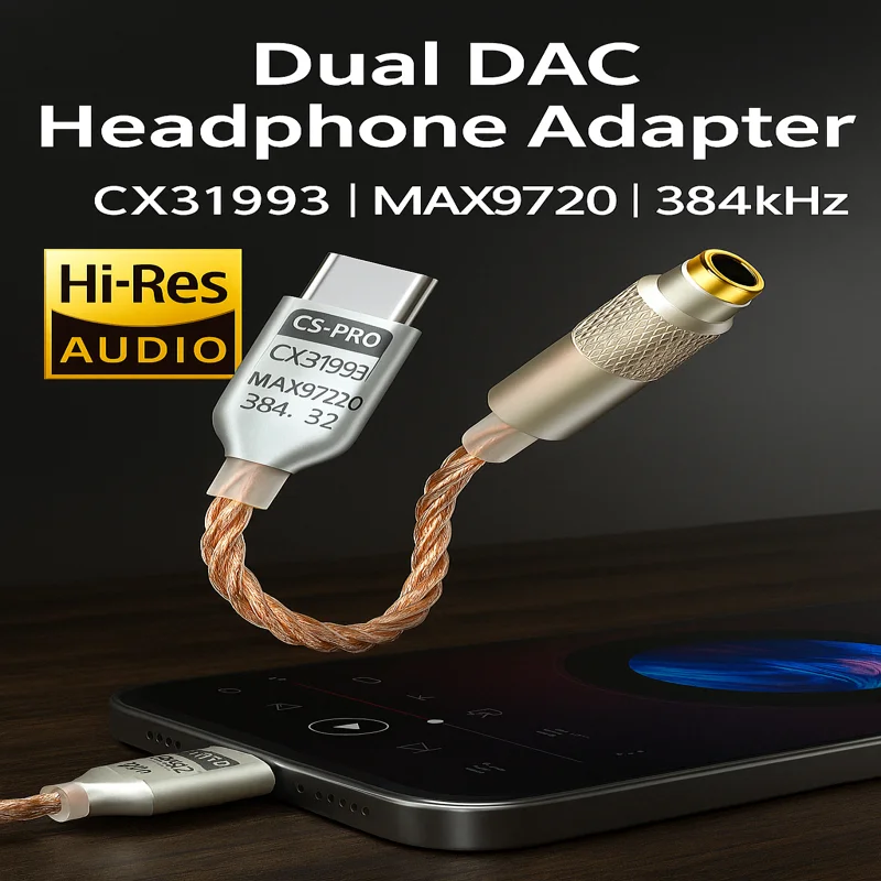 Type-C to 3.5mm DAC Headphone Adapter CX31993 MAX97220 Dual Chip Amp Cable for Android PC HiFi Audio DSD 384kHz 32bit $6.31