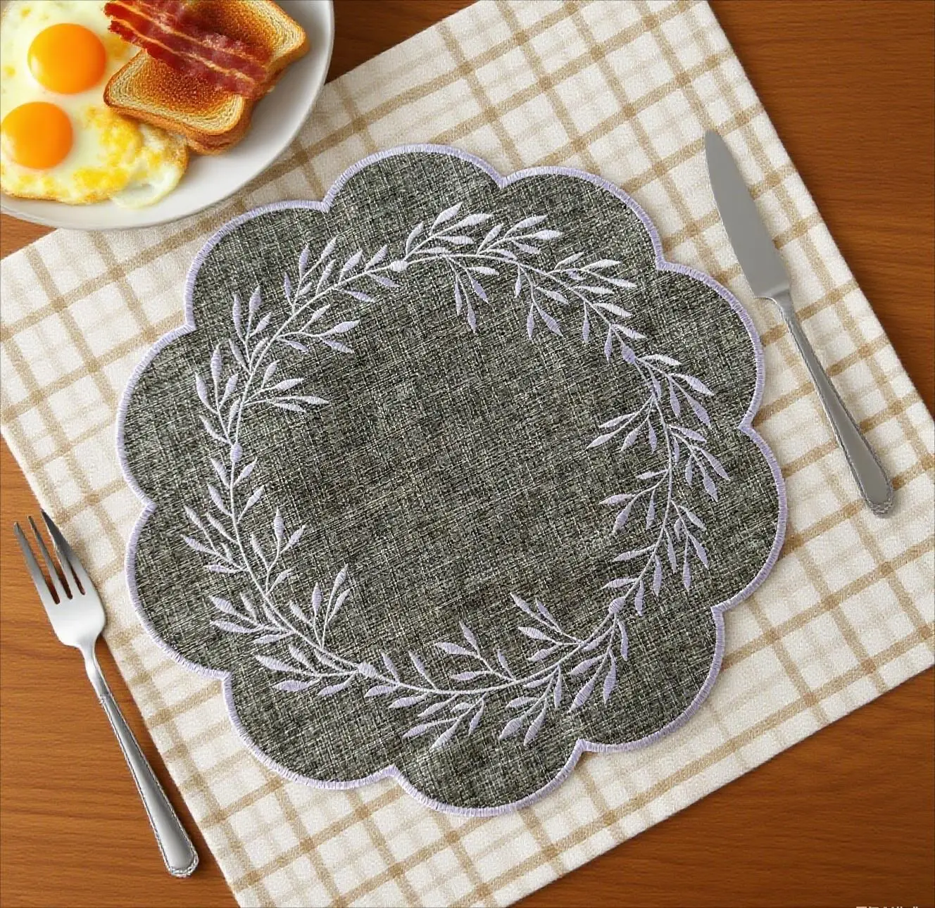 Circular Embroidered Placemats Cotton-Linen Material Washable for Home Dining Tables Hotels Spring Festival Tabletop Decoration $13.75