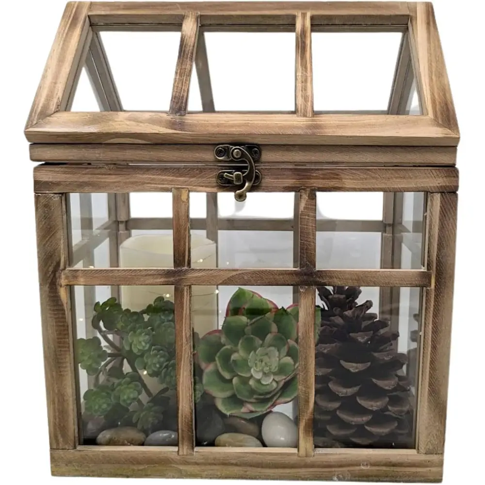 Large Rustic Wood & Glass Plant Succulent Terrarium with Lid - 12 x 9.8 x 7 Decorative Farmhouse Tabletop Greenhouse Display for $47.80