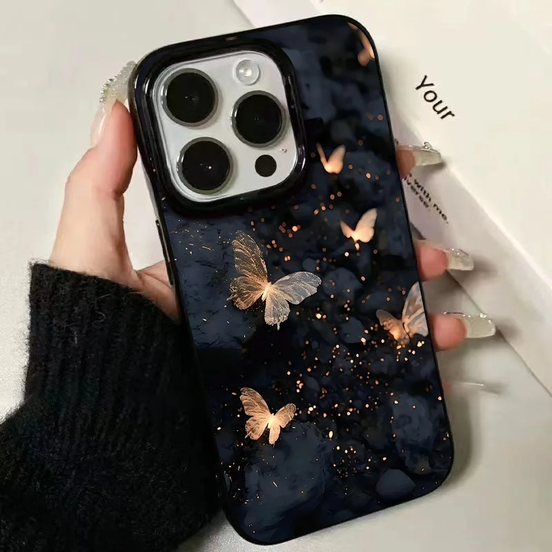 Romantic butterfly print pattern phone case suitable for iPhone 17 16 15 14 13 12 11 Pro/Max/Plus anti drop and shockproof $6.41