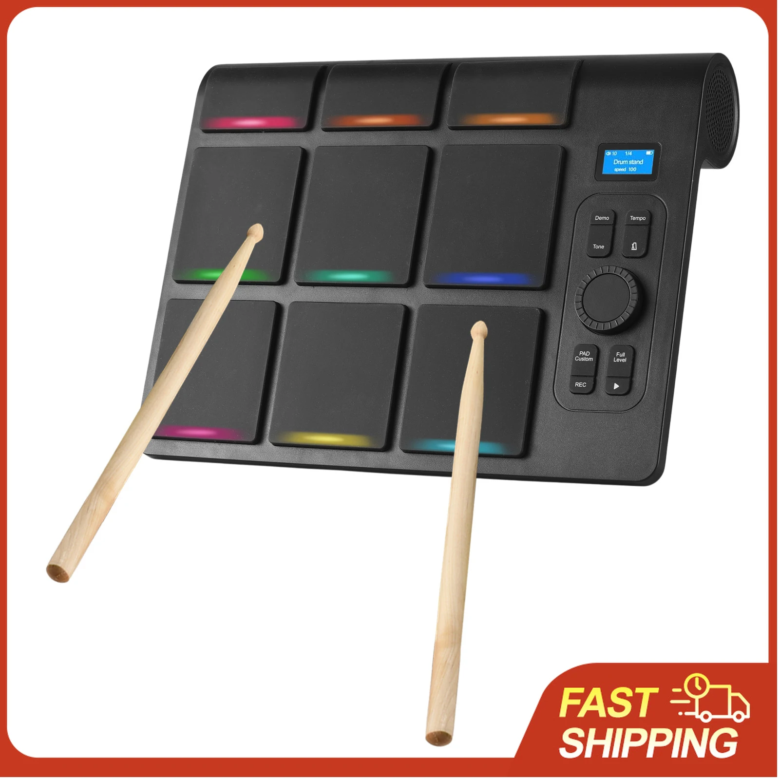 9-Pad Electronic Drum Set Tabletop Practice Kit with Pedals 16 Sounds Built-in Speakers USB MIDI for Beginner Home Practice $114.69