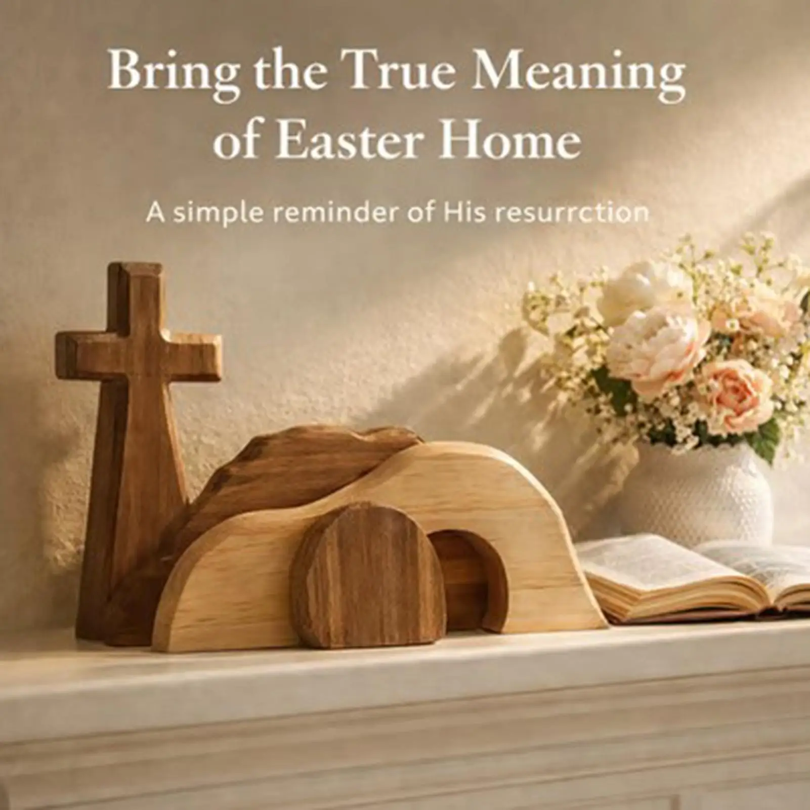 2026 Empty Tomb Decor Wooden Tabletop Ornaments Easter Tomb Display For Home Church Mantle Shelf Desk Family Holiday Spring $13.45