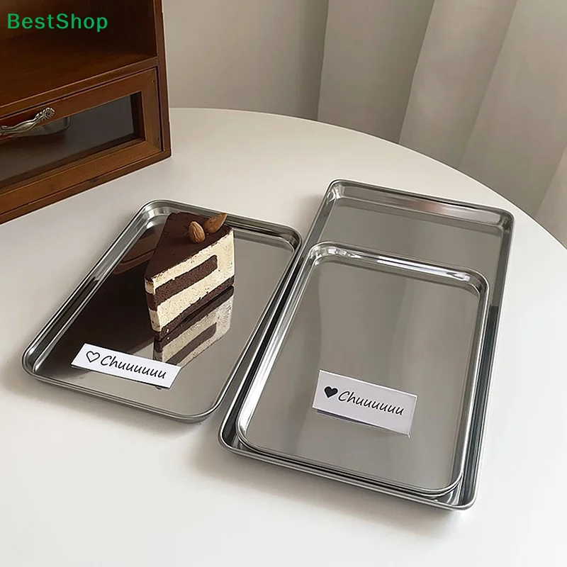 ☆Sleek Mirror Finish Tray – Stainless Steel Rectangular Platter for Modern Tabletop Decor & Serving $7.29
