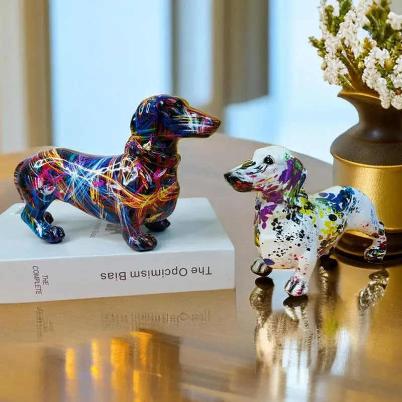 Colorful Graffiti Art Dachshund Dog Decoration Home Office Collection Decoration Tabletop Resin Crafts Miniature Statues $8.72