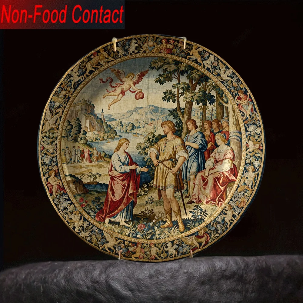 1pc Renaissance Angel & Saint Jerome Ceramic Decorative Plate - Non-Food Contact Tabletop Art, Classic Round Wall or Surface $20.57