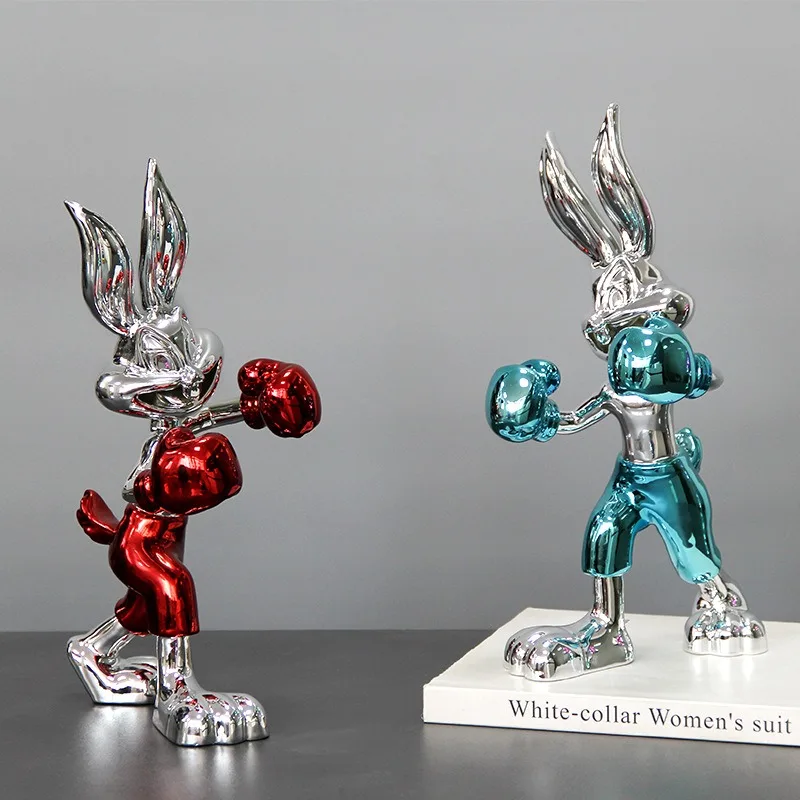 32/53cm Creative Boxing Rabbit Sculpture Entrance Ornament High-end Light Luxury Ornament Sense Tabletop Home Decoration Crafts $67.55