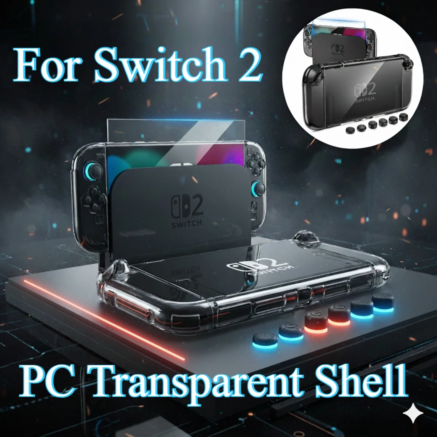 1pc PC Transparent Shell for Switch 2 Case, Switch 2 Case with 4K HD Screen Protector, PC Protective Cover and 6 Thumb Grips $14.11