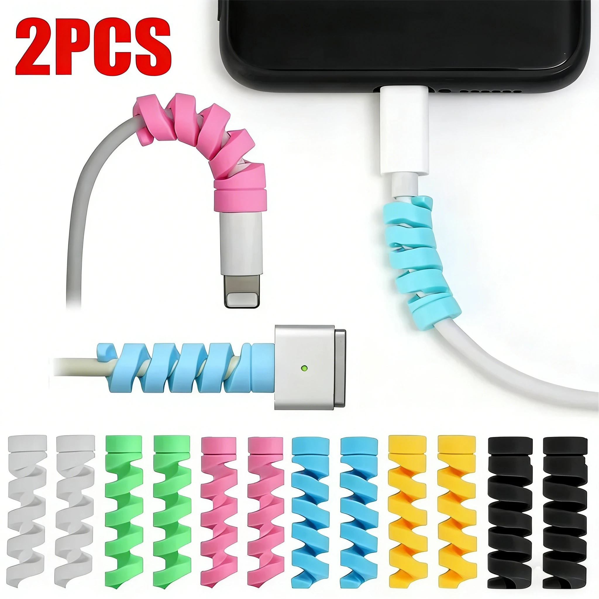 2PCS Spiral Cable Winder Protector Soft Silicone Cable Winder Clip Saver Cover For Android Phone Mouse Earphone Wire Protection $5.26