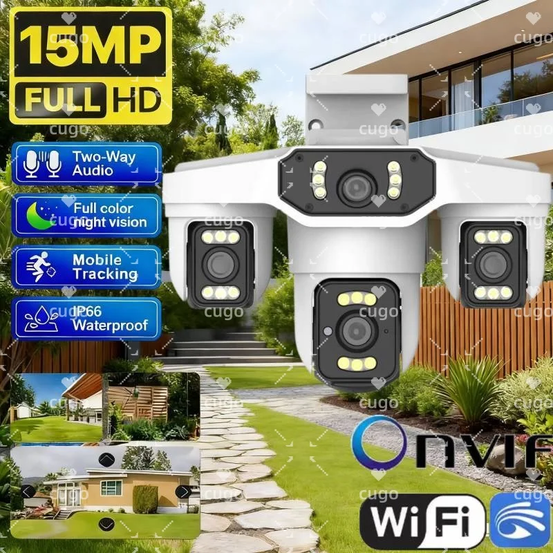 15MP 8K Wifi IP Camera Three Lenses PTZ Outdoor Four Lens Smart Home Wireless HD Night Vision CCTV Security Cam Onvif Yoosee $56.71