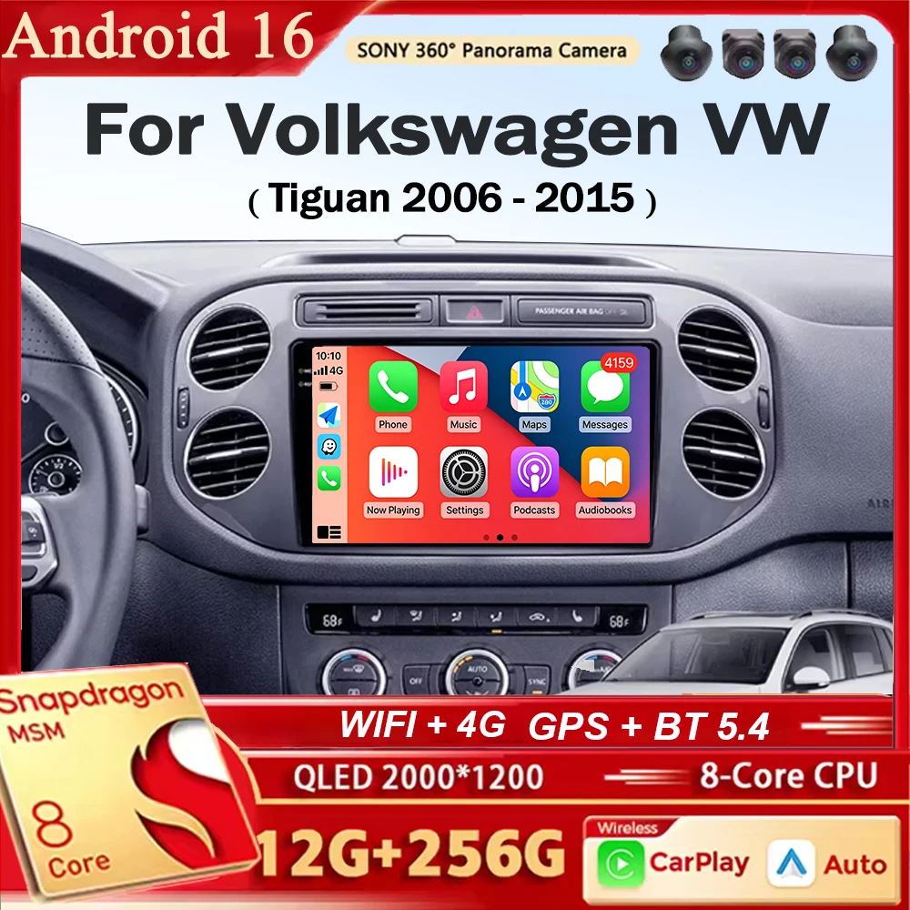 Car Radio For Volkswagen VW Tiguan 2006 - 2015 Golf Plus Wireless Carplay Android 16 Auto Car Stereo Multimedia Player GPS 4G $95.71
