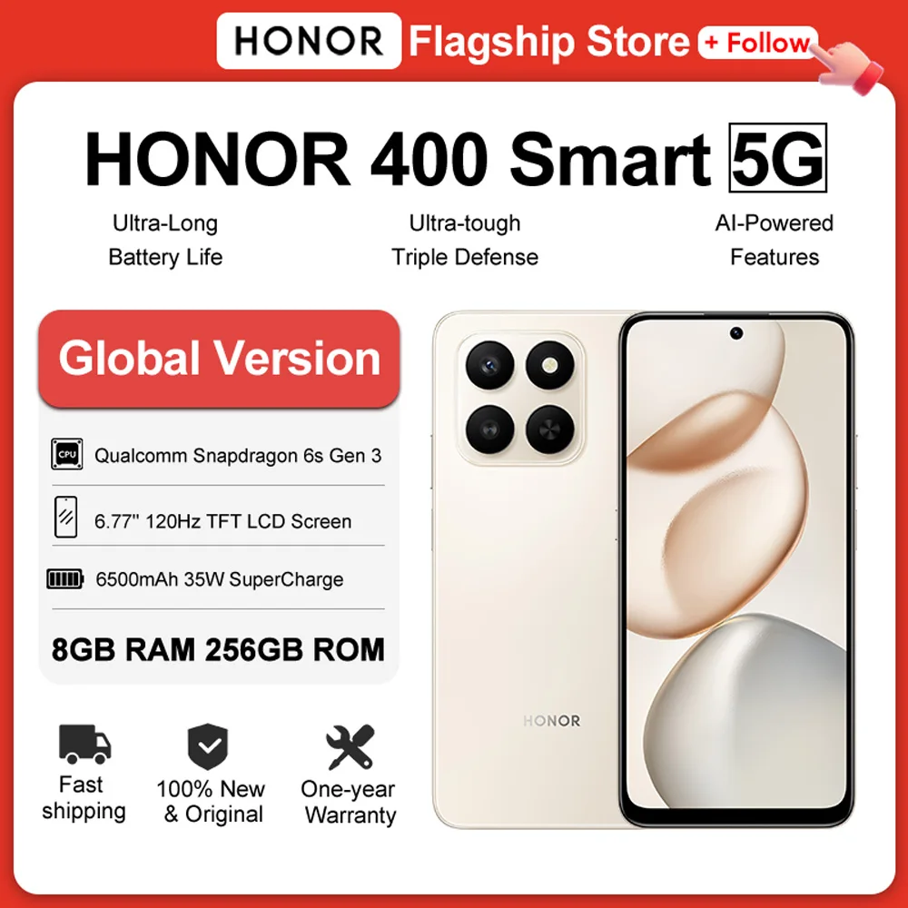 Global Version HONOR 400 Smart 5G Smartphone 6.77''120Hz Screen Snapdragon 6s Gen 3 6500mAh Battery 35W HONOR SuperCharge IP65 $199.00