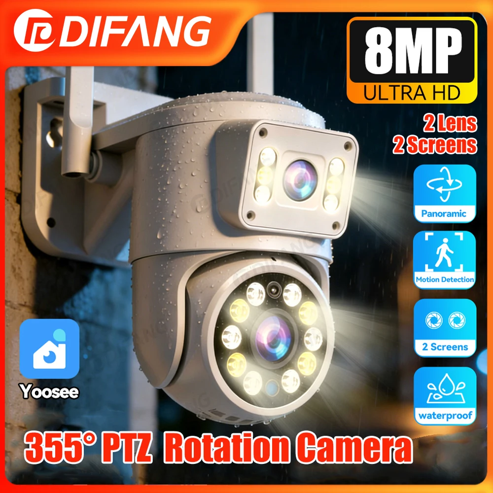 Yoosee Indoor/Outdoor 8 MP WiFi Security Camera Dual Lens 2 Screen PIR Human Detection Auto Tracking Surveillance Camera CCTV $31.93