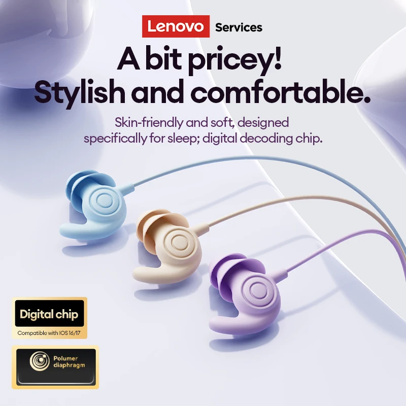 NEW Lenovo YF40 Wired Sleep Earphones 3.5mm/Type-C Silicone In-ear Earbuds Hifi Stereo Wired Headphones Double Noise Reduction $12.64
