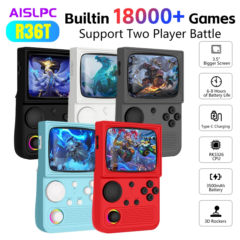 R36T Retro Handheld Game Console EmuEMEC System Wi-Fi Support 22000+Games 128GB 3.5'' IPS Screen Portable Pocket Video Console $42.07