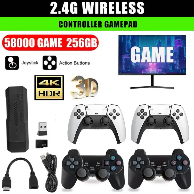 Retro Game Stick 50 Emulators 58000+ Games 4K TV Handheld Game Console HDMI-Compatible Classic Video Wireless Controller $25.96