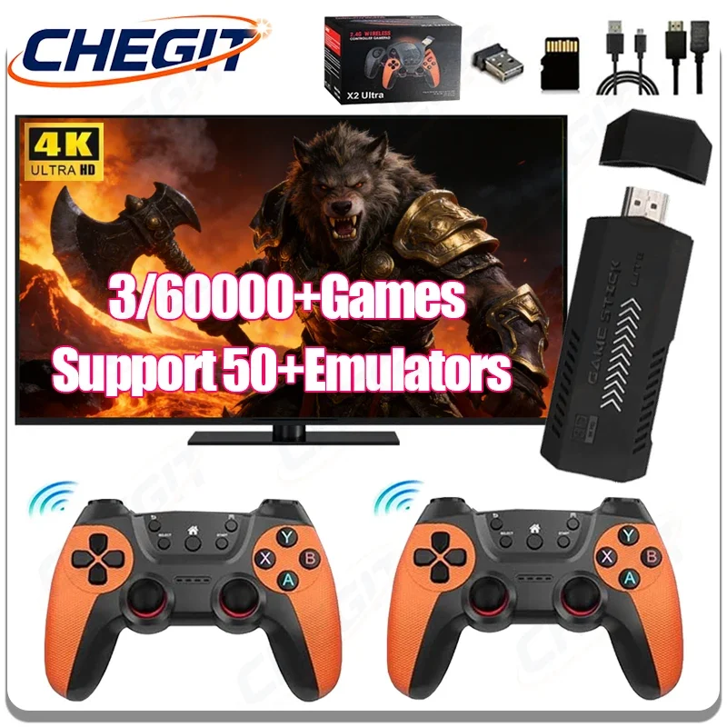 X2 PRO 4K HD Gaming Stick Wireless Controller 3/60000+Games 50+ Emulators Classic Video Game Console 32/256 GB for PSP/PS1/GBA $21.23
