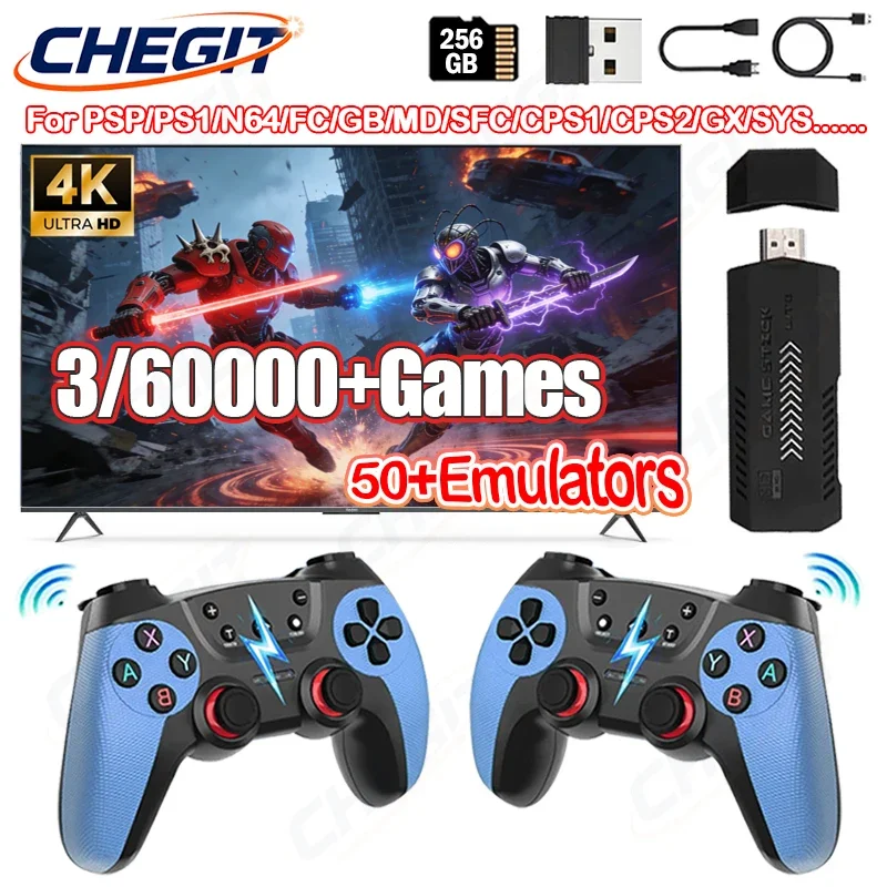X2 PRO 3/60000+Games 50+ Emulators Classic Video Game Console 32/256 GB Gaming Stick 4K HD Wireless Controller for PSP/PS1/GBA $22.16