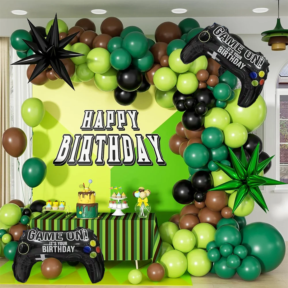 Brown Black Green Latex Balloons Garland Arch Kit for Jungle Video Game Theme Babyshower Birthday Party Decorations Supplies $10.80