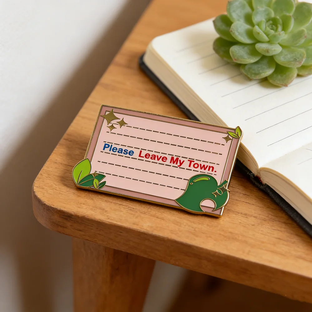 Please Leave My Town Enamel Pin Kawaii Cartoons Green Leaf Brooch Jewelry Animal Crossings Video Game Fans Collect Badges $3.50