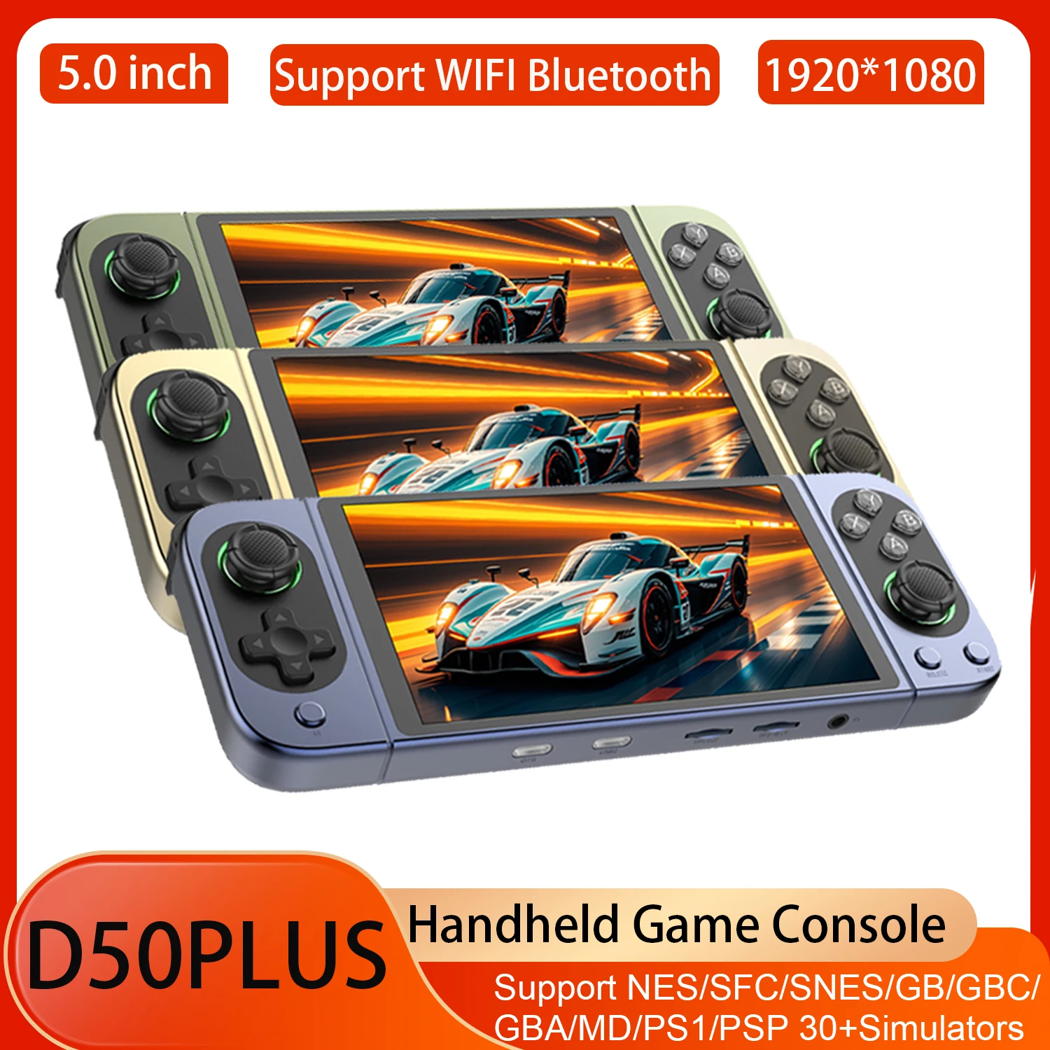 D-50PLUS Retro Handheld Game Console 1920*1080 Linux System 5-inch HD Touch Screen Support WIFI Bluetooth Portable Video Player $118.42